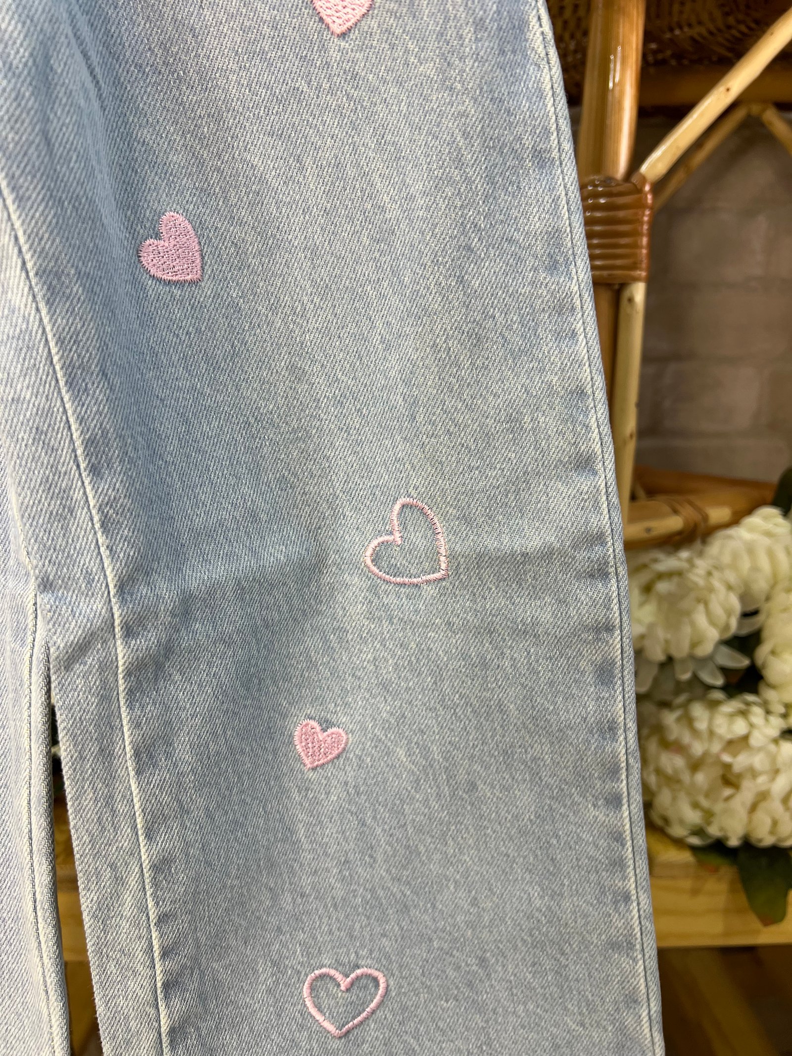 Pantalon jean cœur rose