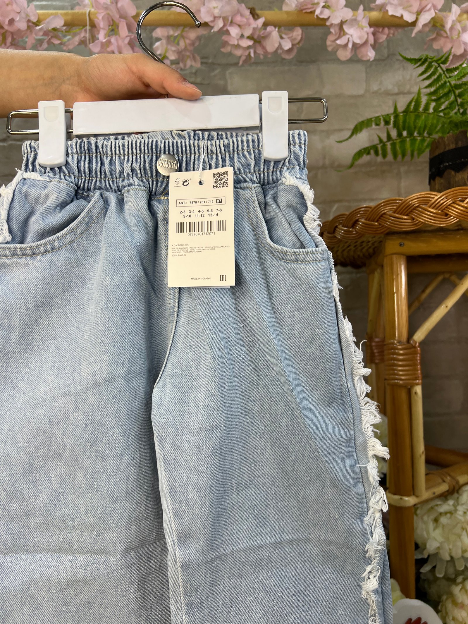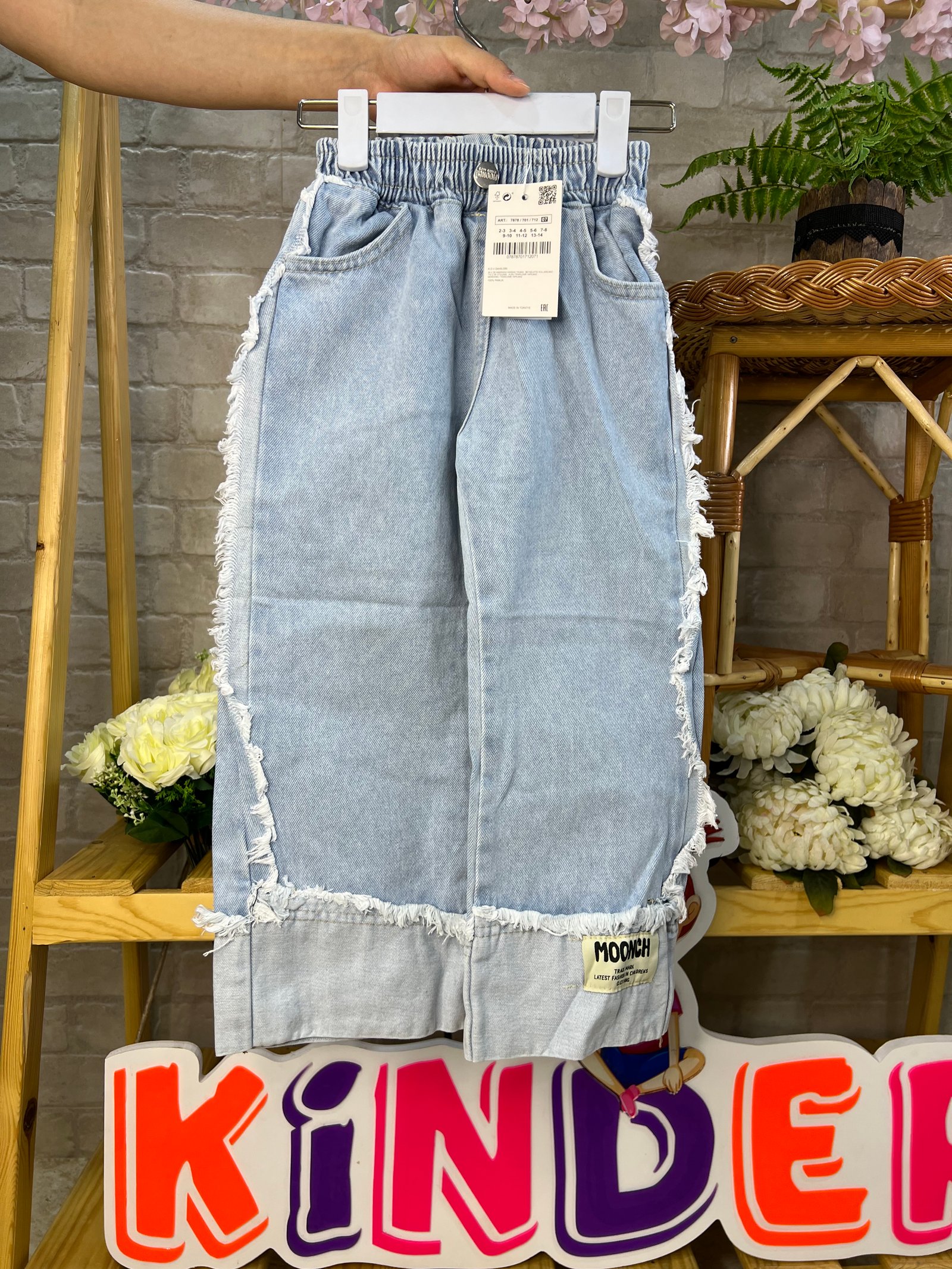 سروال جينز بناتي مريح وأنيق\r\nبخصر إيلاستيكي مطاطي من الأعلى لسهولة اللبس وراحة مثالية، يتكيف مع جسم الطفل بدون ضغط. تصميم مزين بتطريزات جميلة وقصة مريحة تسمح بحرية الحركة. عملي وأنيق للاستعمال اليومي 🌸�\r\n