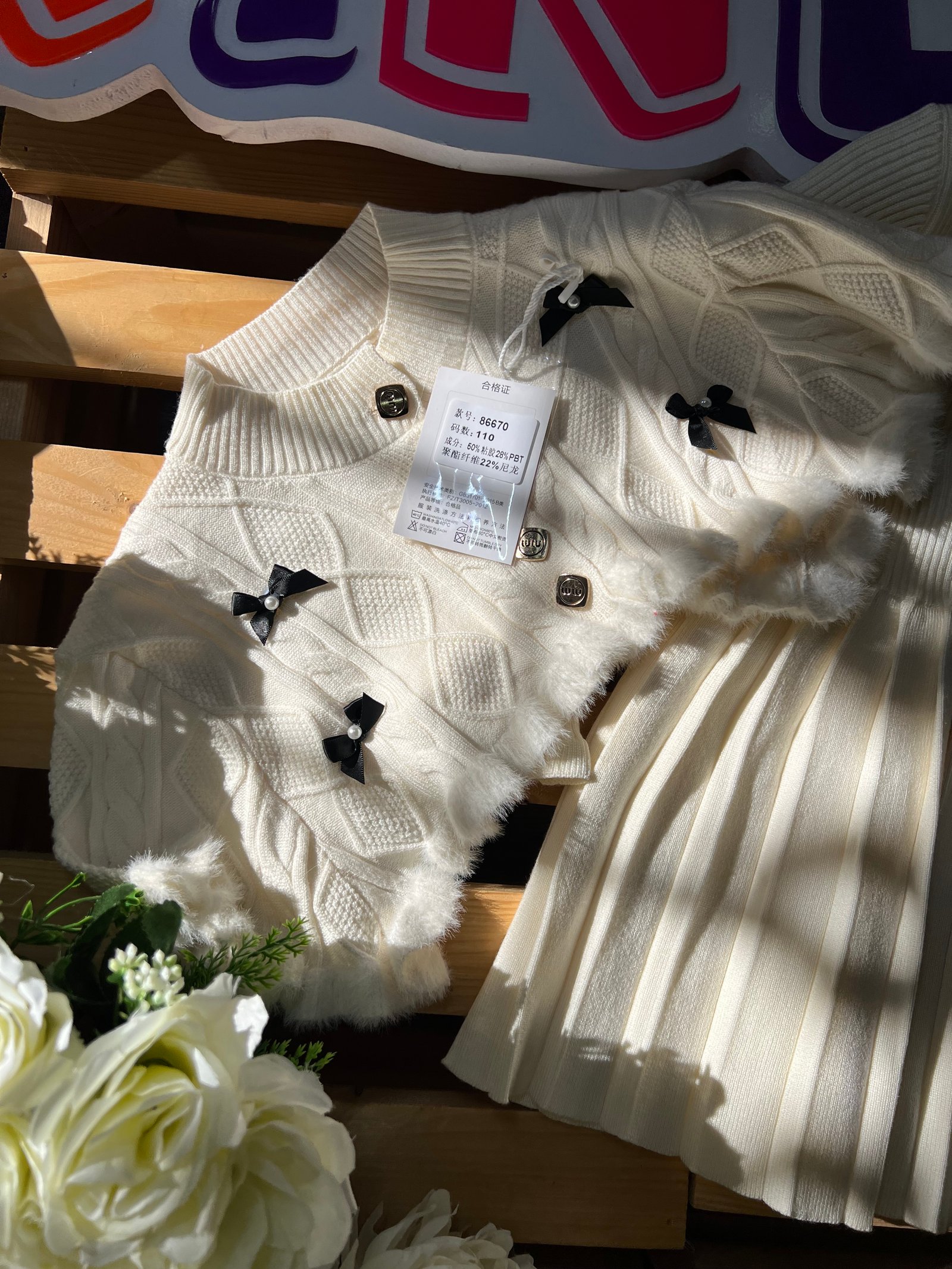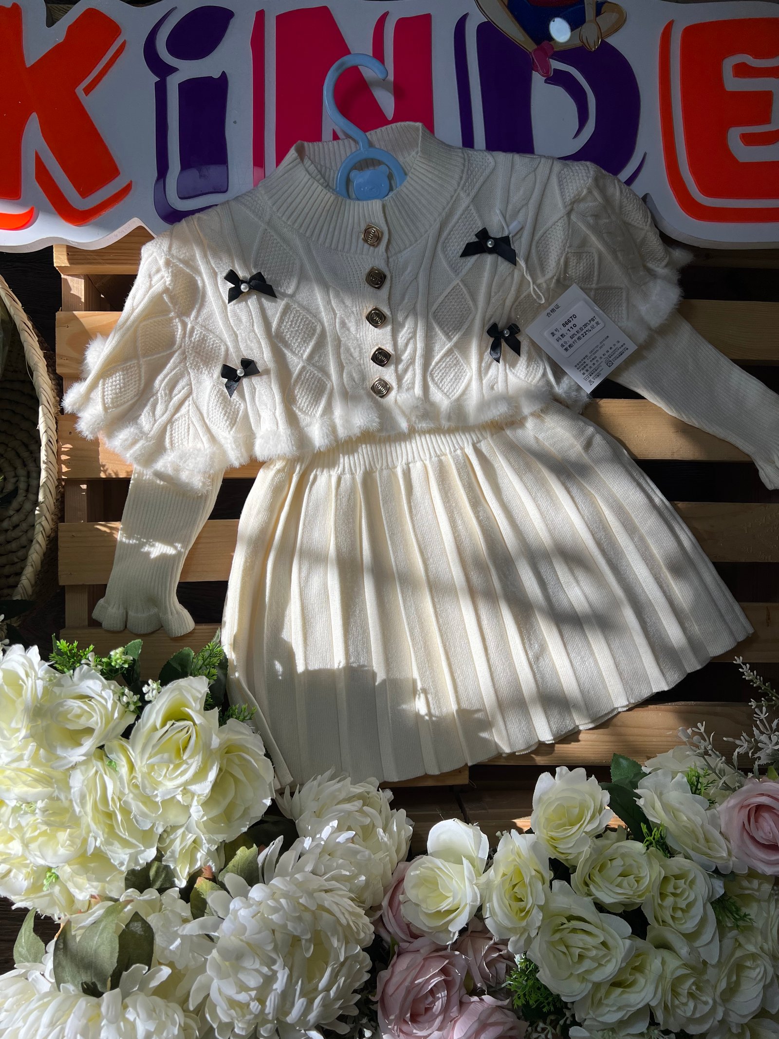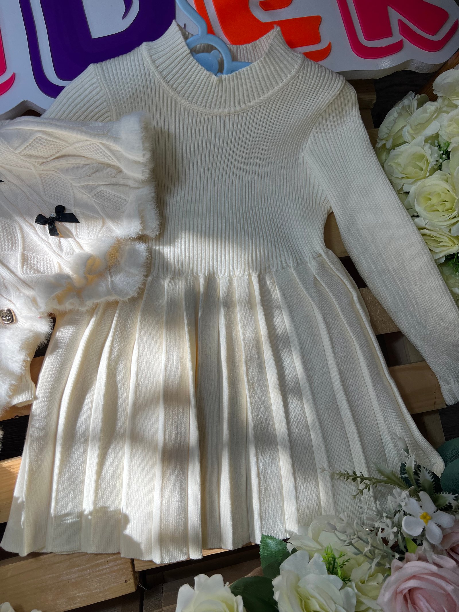 طقم بناتي شتوي أنيق\r\nفستان محبوك مع كنزة قصيرة مزينة بأزرار وفيونكات راقية، خامة دافئة وناعمة، تصميم مريح بخصر مرن يمنح حرية حركة وأناقة مثالية للمناسبات والخروجات ✨�\r\n