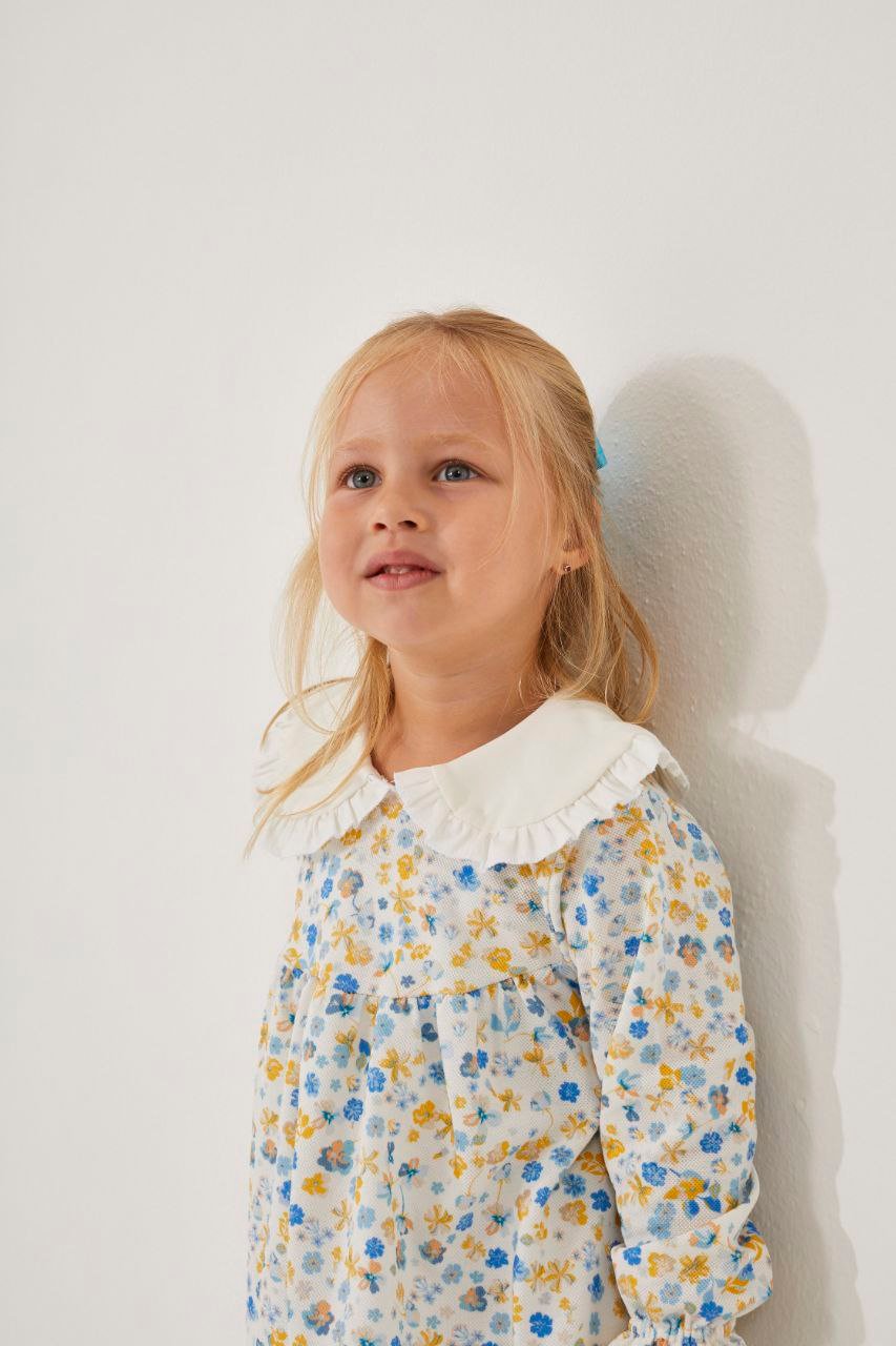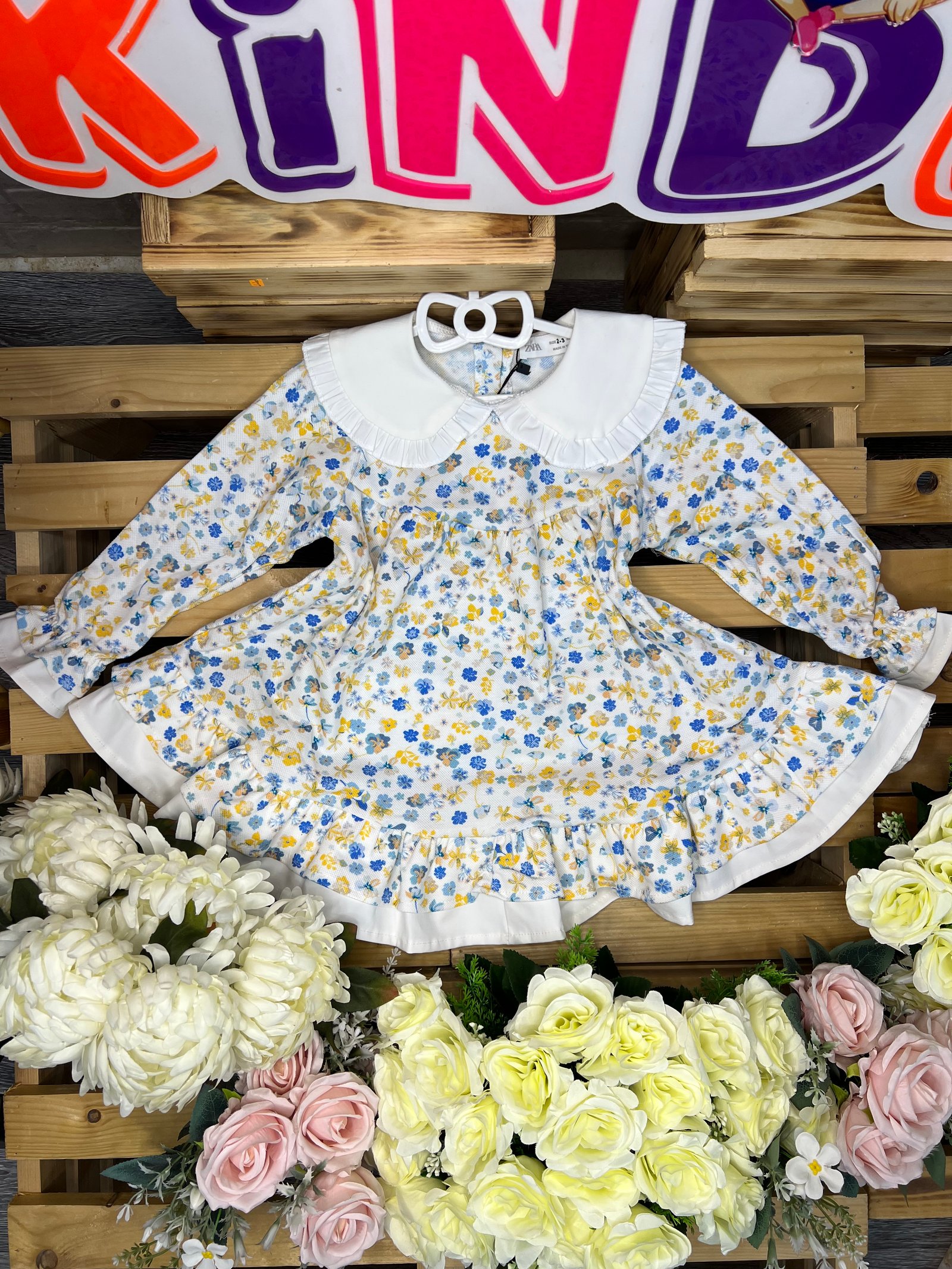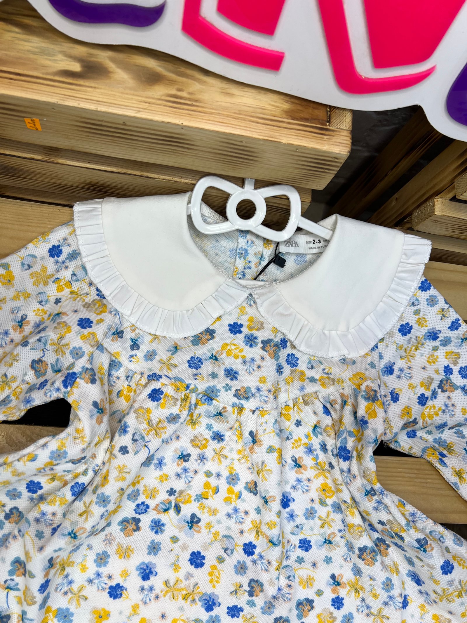 • التصميم: فساتين بنقشات زهور ناعمة مع ياقة "بيتر بان" العريضة التي تضفي طابعاً ريفياً ساحراً 👒.