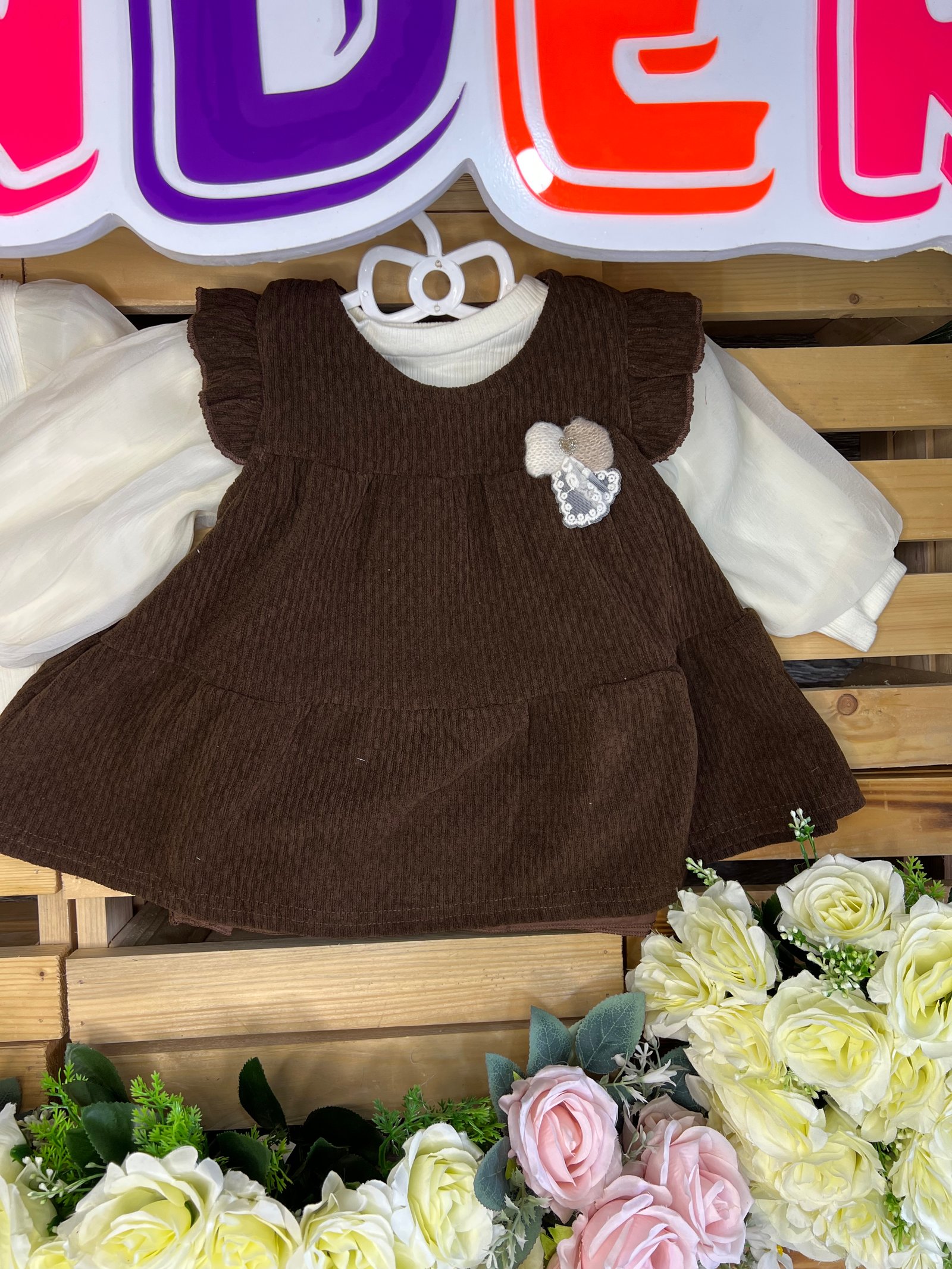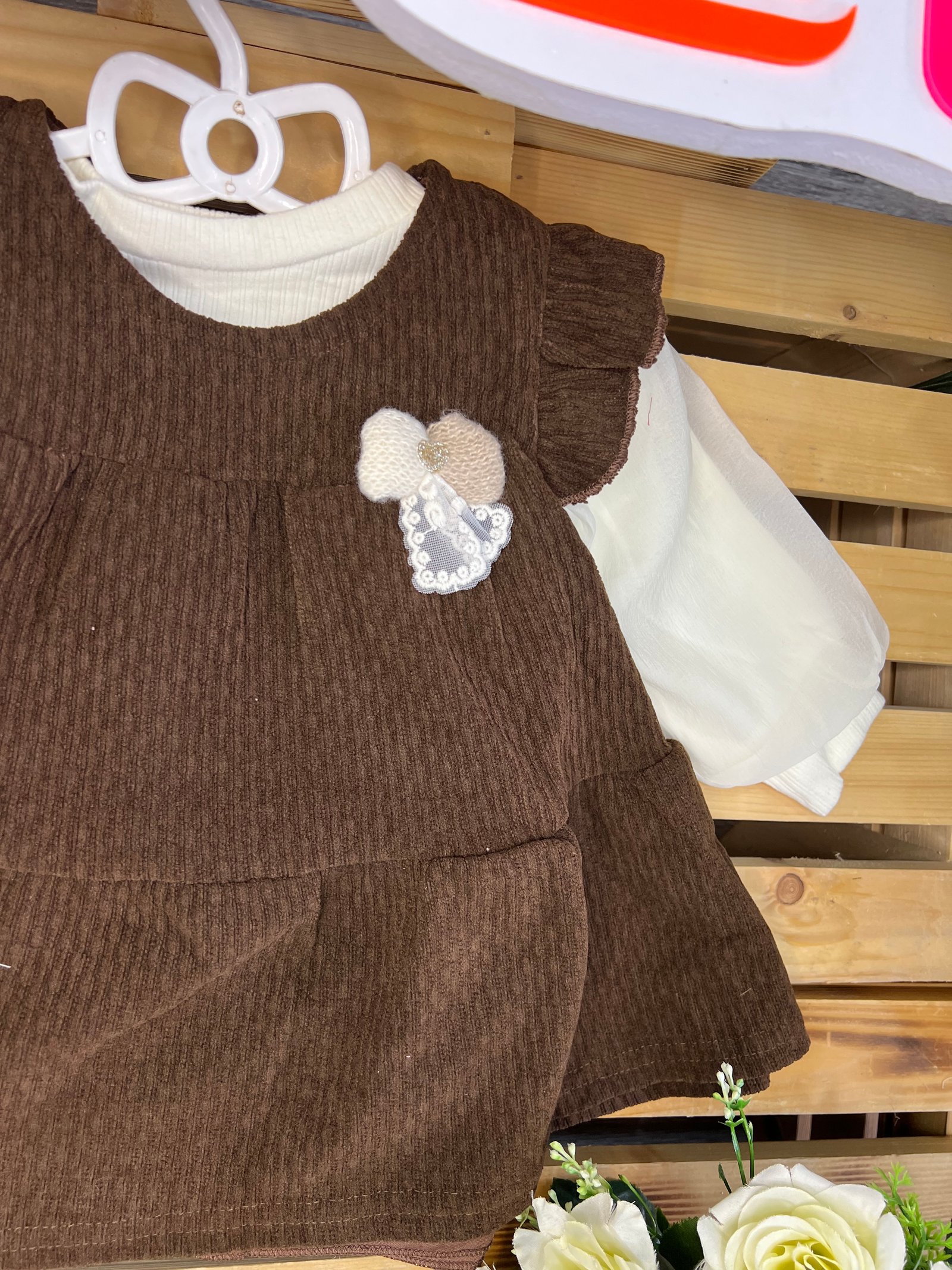 طقم "البراءة المخملية" الأنيق 🧸🤎رقيّ دافئ لإطلالة طفلتكِ اليومية!